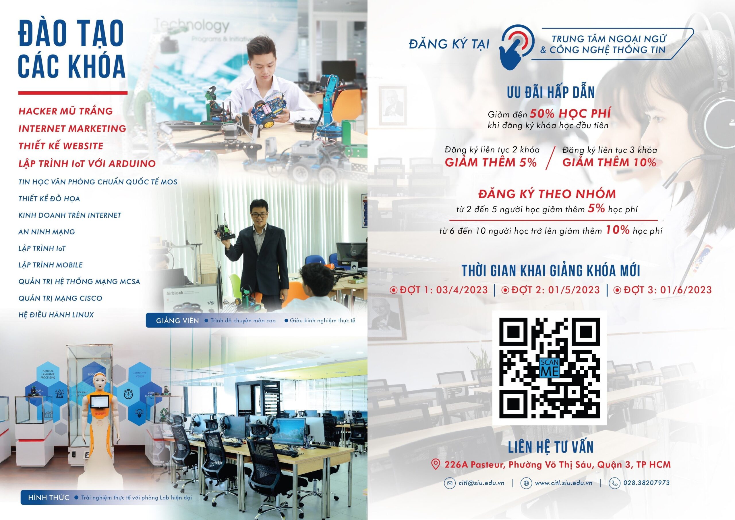 Đào tạo linh hoạt, thực chiến: từ ngoại ngữ, CNTT tới kỹ năng sống – học là ứng dụng được ngay.